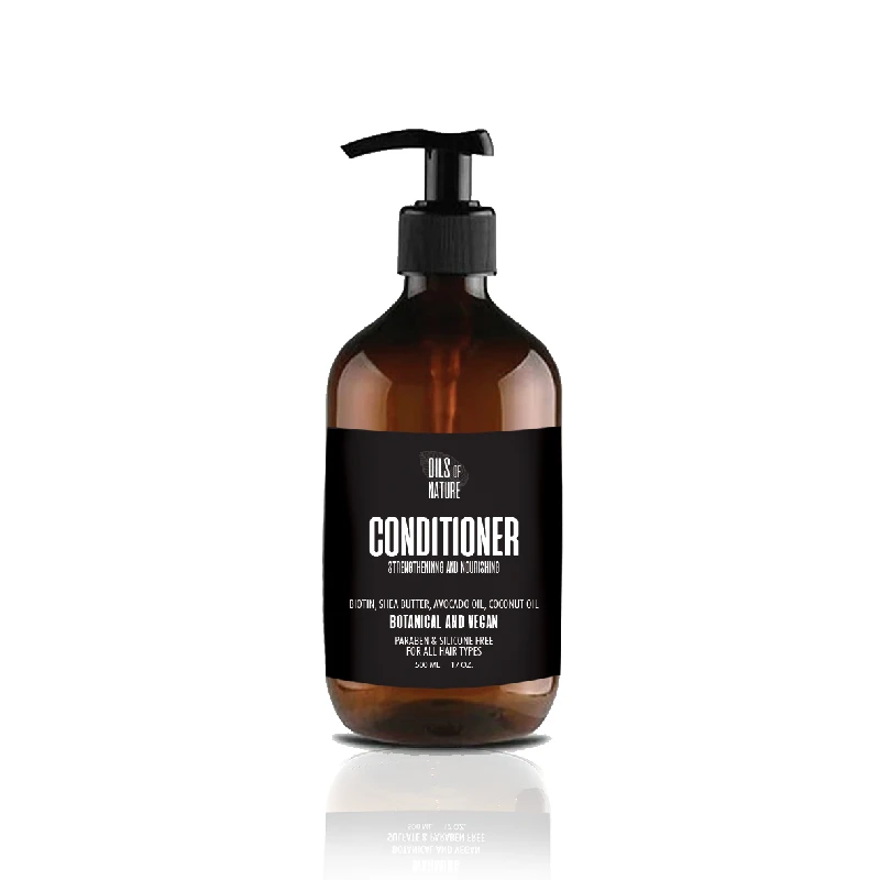 Following the Oils of Nature Botanical Shampoo, massage conditioner into the hair, focusing on the ends. Rinse thoroughly