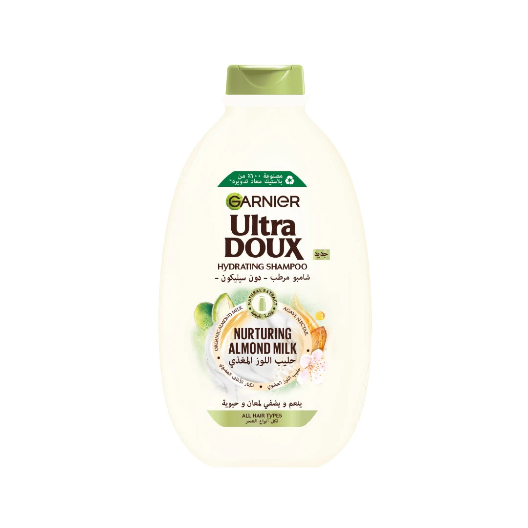 Discover Garnier Ultra Doux Almond Milk Shampoo; the ideal haircare for normal hair with 98% natural ingredients. Pollution, heat, sweat and product build-up can feel like a daily battle. No need to stress when you can enjoy two scrumptious ingredients in one delicious recipe, to leave hair gently cleansed and beautifully nourished. • Gently cleanses for Healthier, Stronger, Fairytale hair • Lightweight formula leaves hair Silky Smooth and Beautifully Soft • 98% Natural Origin Ingredients, Vegan Formula, Silicone free for a natural feel