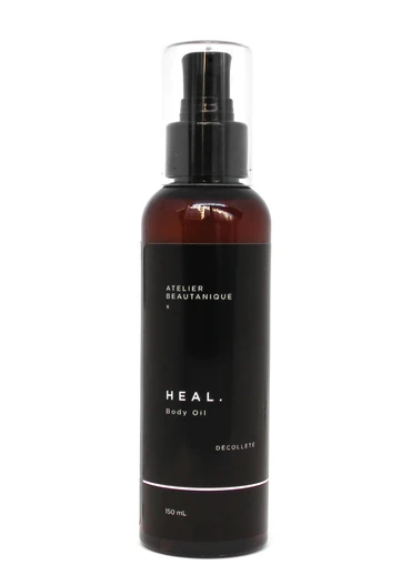 Atelier Beautanique – Heal’s 150mL Body Oil. Deeply moisturizing, nourishing and aromatic oil. Enhances skin suppleness and elasticity. Free of mineral oils, silicones, sulfates and phtalates.