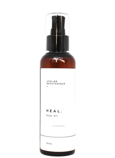 Atelier Beautanique – Heal’s 150mL Body Oil. Deeply moisturizing, nourishing and aromatic oil. Enhances skin suppleness and elasticity. Free of mineral oils, silicones, sulfates and phtalates.