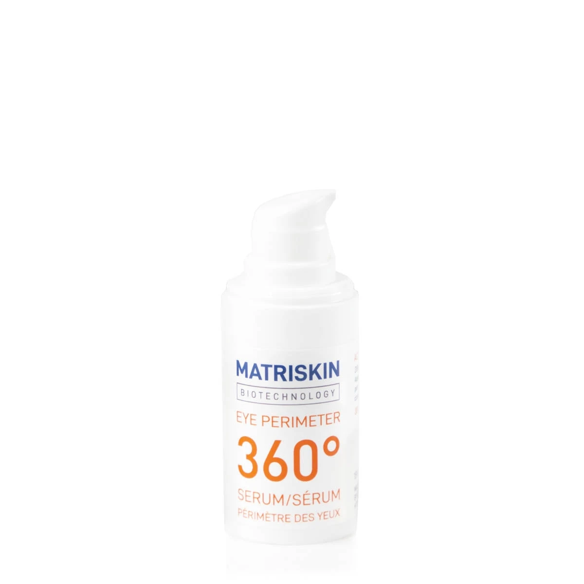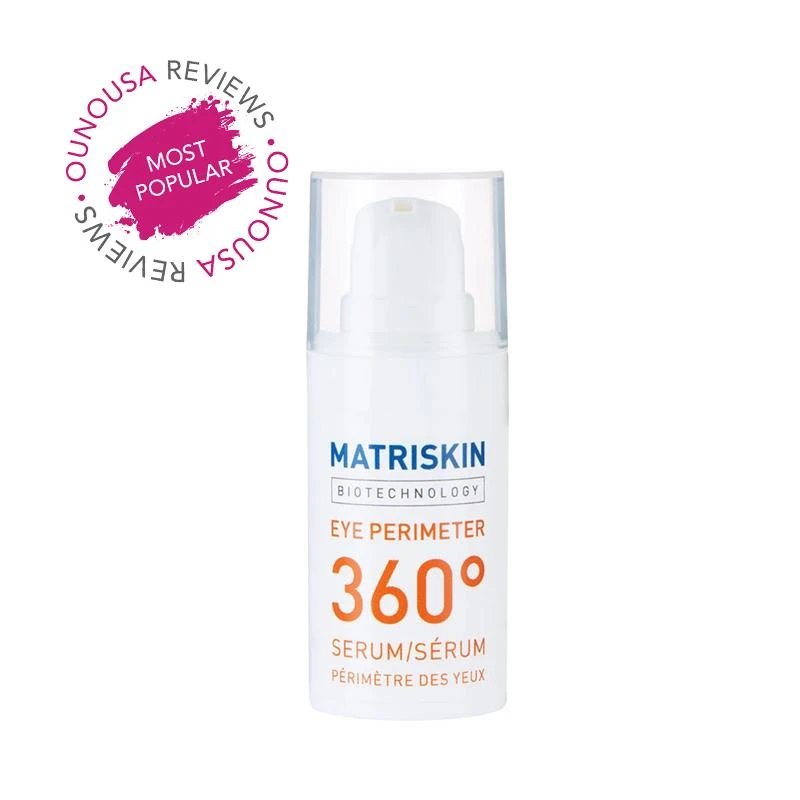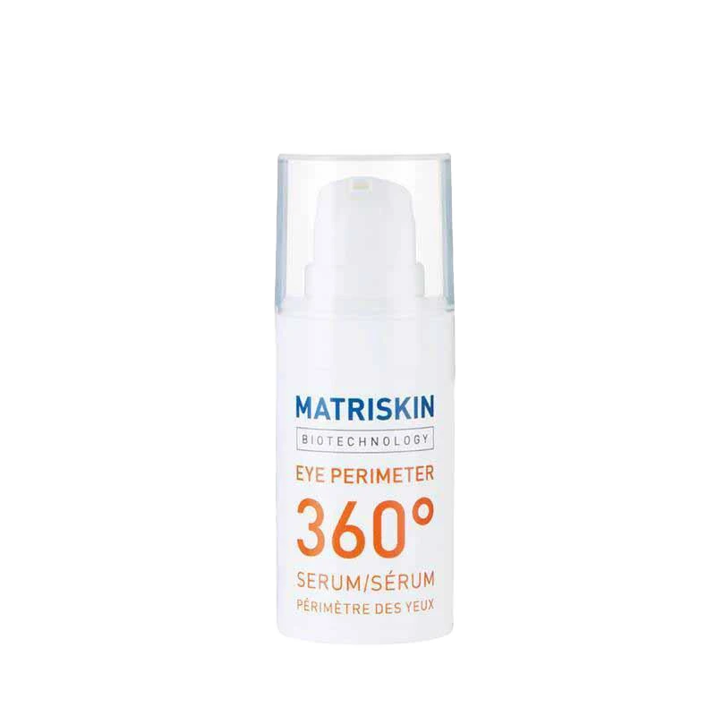 Matriskin Eye Perimeter 360 Serum has a unique combination of patented active ingredients. This serum acts on the lower part of the eye area against bags and dark circles, on the outer eye contour against crows’ feet, and on the upper eyelid against wrinkles.